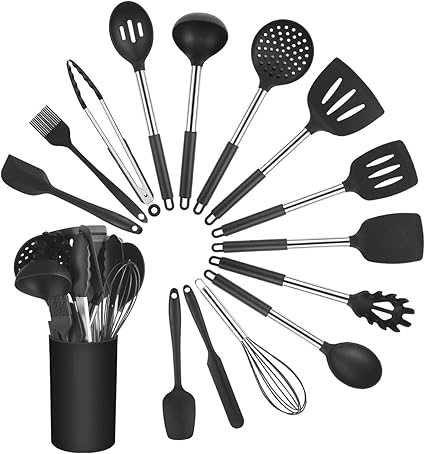 Vicloon Set Di Utensili Da Cucina In Silicone 15 Pezzi Accessori Cucina Spatola Per Pentole Antiaderente Resistente Al Calore Strumento Di Cottura E Utensili Da Cucina Professionali Nero Amazon It Casa E Cucina