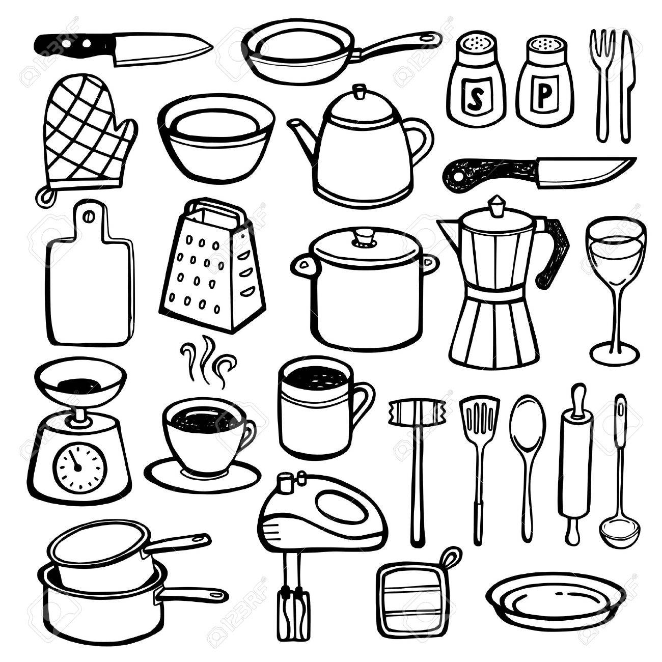 Vettoriale Collezione Di Utensili Da Cucina Disegnati A Mano Posate Pentole Padelle Tazze Puo Essere Utilizzato Per Stampa O Web Image 76879051
