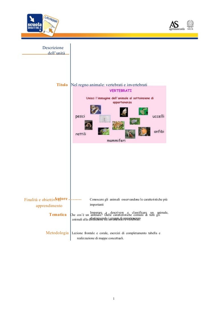Classe Terza I Vertebrati E Invertebrati Risorse Per L Insegnamento