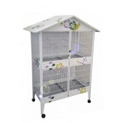 Voliera Zincata Verniciata Bianca Con Fiori Completa Di Accessori