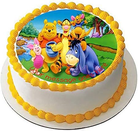 Winnie The Pooh Topper Per Torta Commestibile Con Glassa Di Fondente Rotondo 19 Cm Stampato Con Il Tuo Saluto Personalizzato Amazon It Casa E Cucina