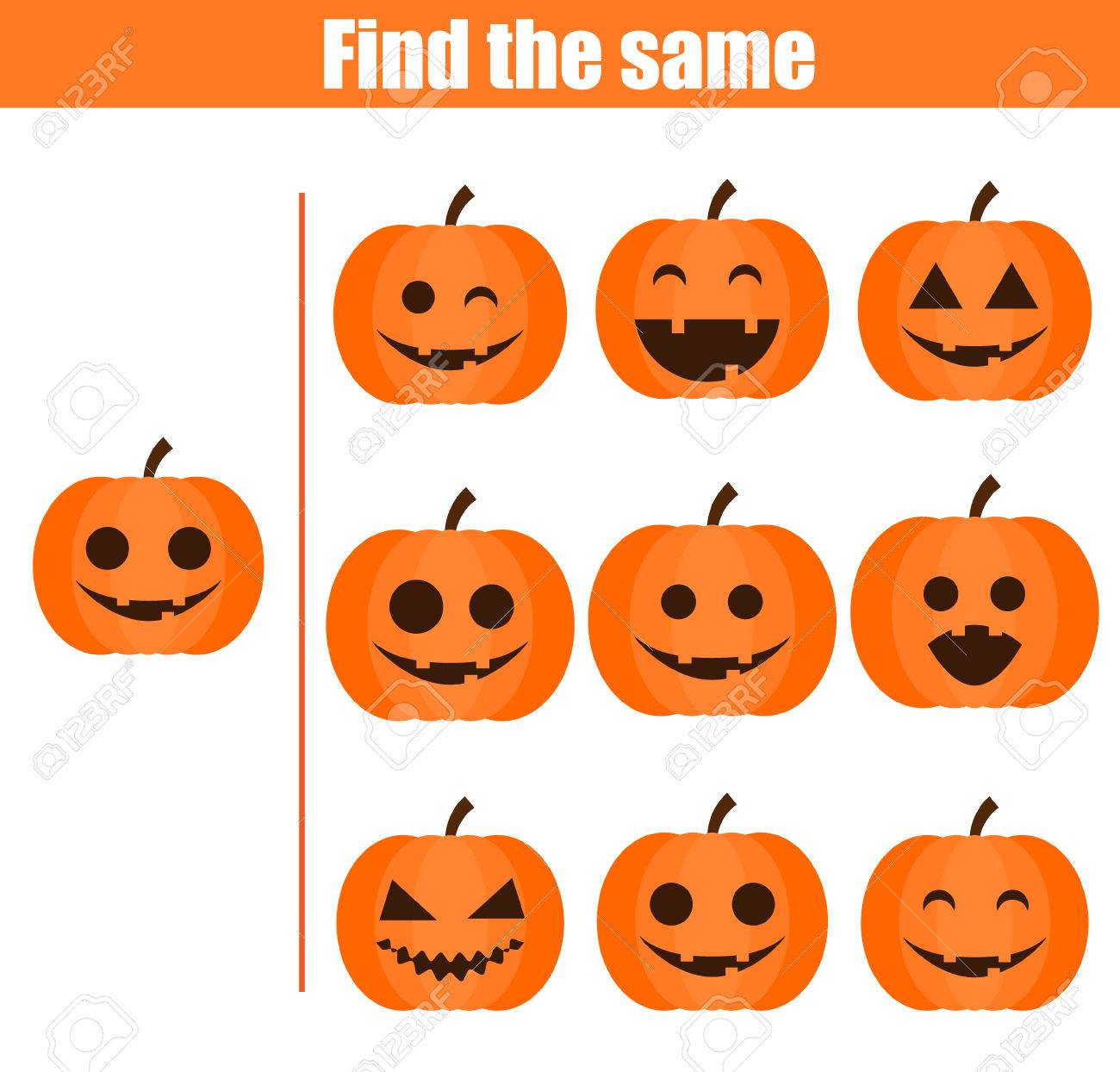 Vettoriale Trova Le Stesse Immagini Gioco Educativo Per Bambini Trova Le Coppie Uguali Di Attivita Per Bambini Di Zucche Di Halloween Image 82177979