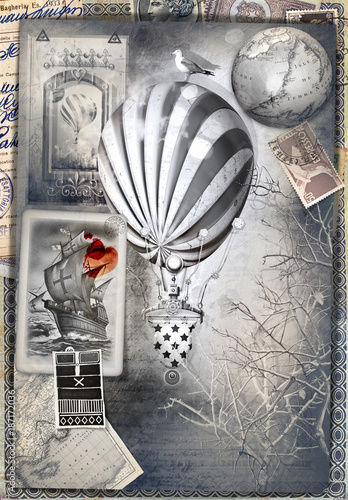 Sfondo Con Misteriose Mappe E Cartoline Vintage Mongolfiere Disegni Collage Vecchi Francobolli E Manoscritti Souvenirs Di Viaggio Buy This Stock Illustration And Explore Similar Illustrations At Adobe Stock Adobe Stock