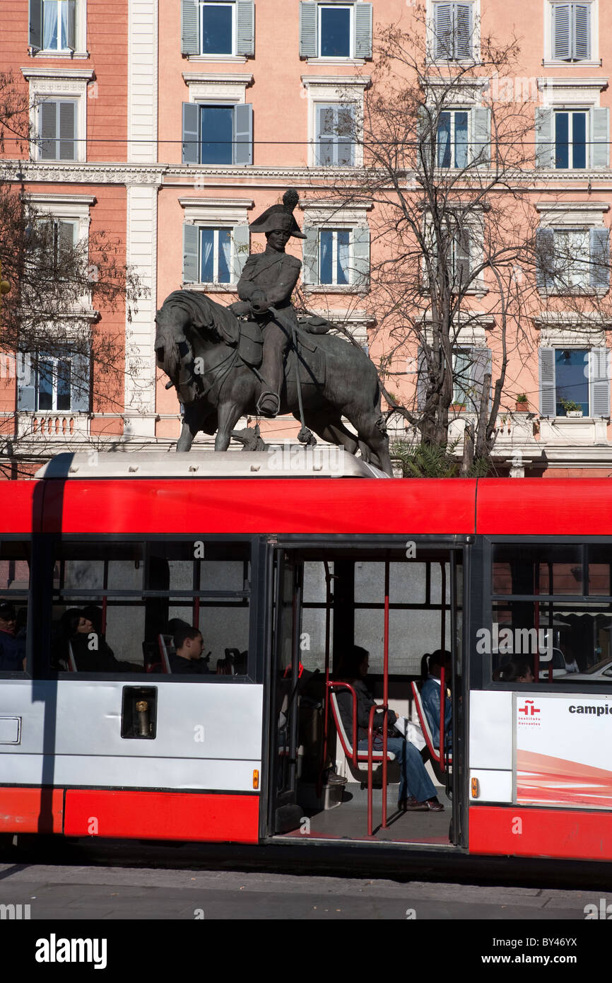 Rome Bus Ferma Presso La Fermata Del Bus Carabinieri A Cavallo Di Una Scultura In Background Street Scene Divertenti Di Scultura Foto Stock Alamy