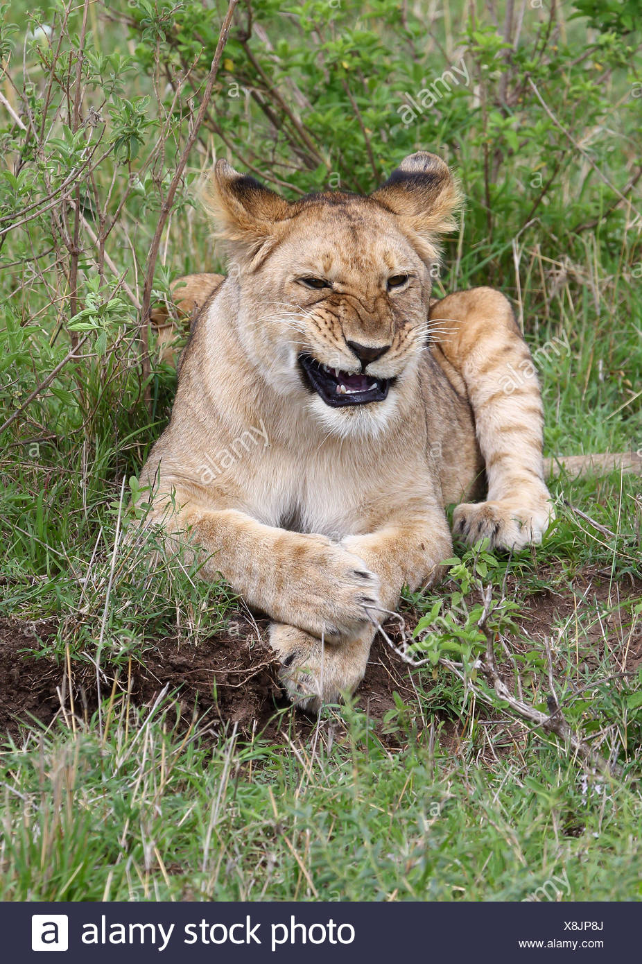Un Leone Divertente Che Scuote La Sua Criniera Fotografia Stock Immagine Di Adorable Ritratto 133131430
