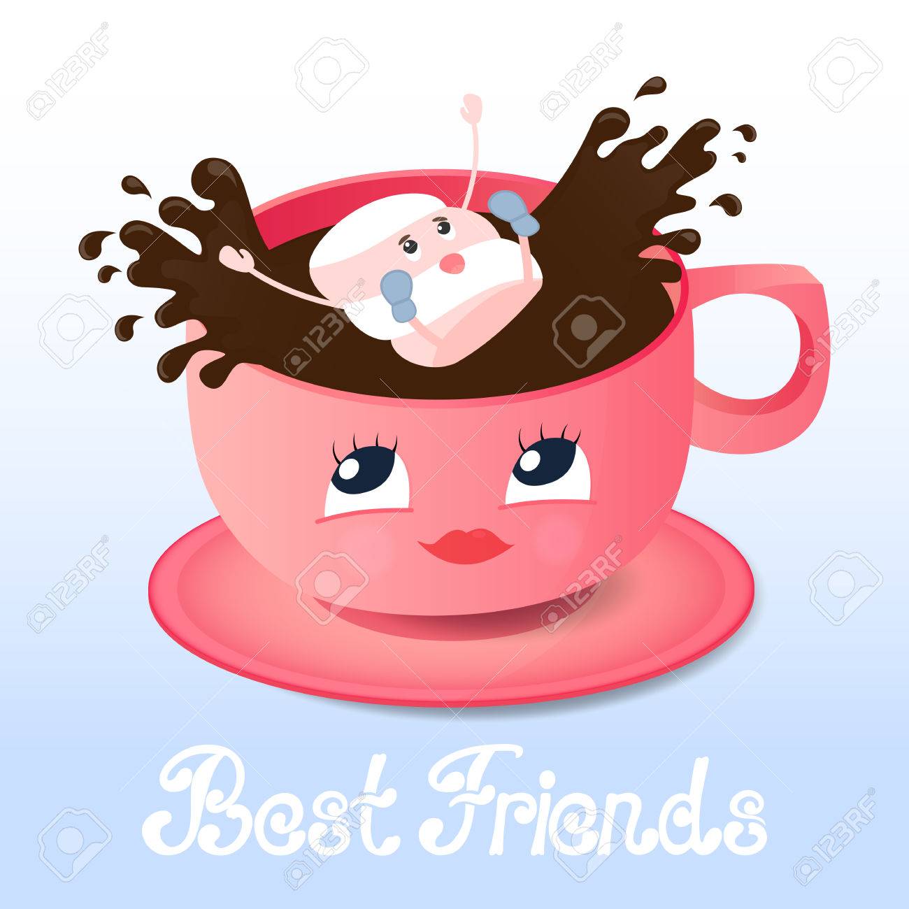 Vettoriale Marshmallow Divertente Cade In Un Caffe Le Migliori Amiche Scritte A Mano Biglietto Di Auguri Per Il Giorno Dell Amicizia Image 82413004