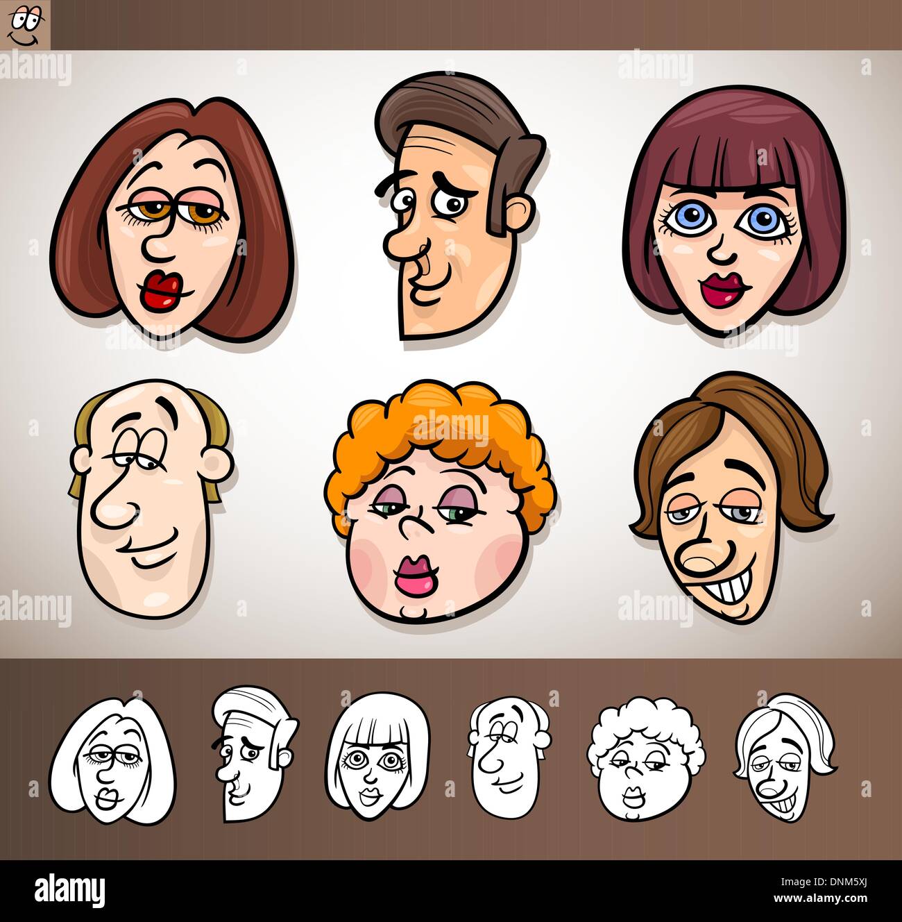 Cartoon Illustrazione Delle Persone Divertenti Insieme Con Gli Uomini E Le Donne A Capo Plus Le Versioni In Bianco E Nero Immagine E Vettoriale Alamy