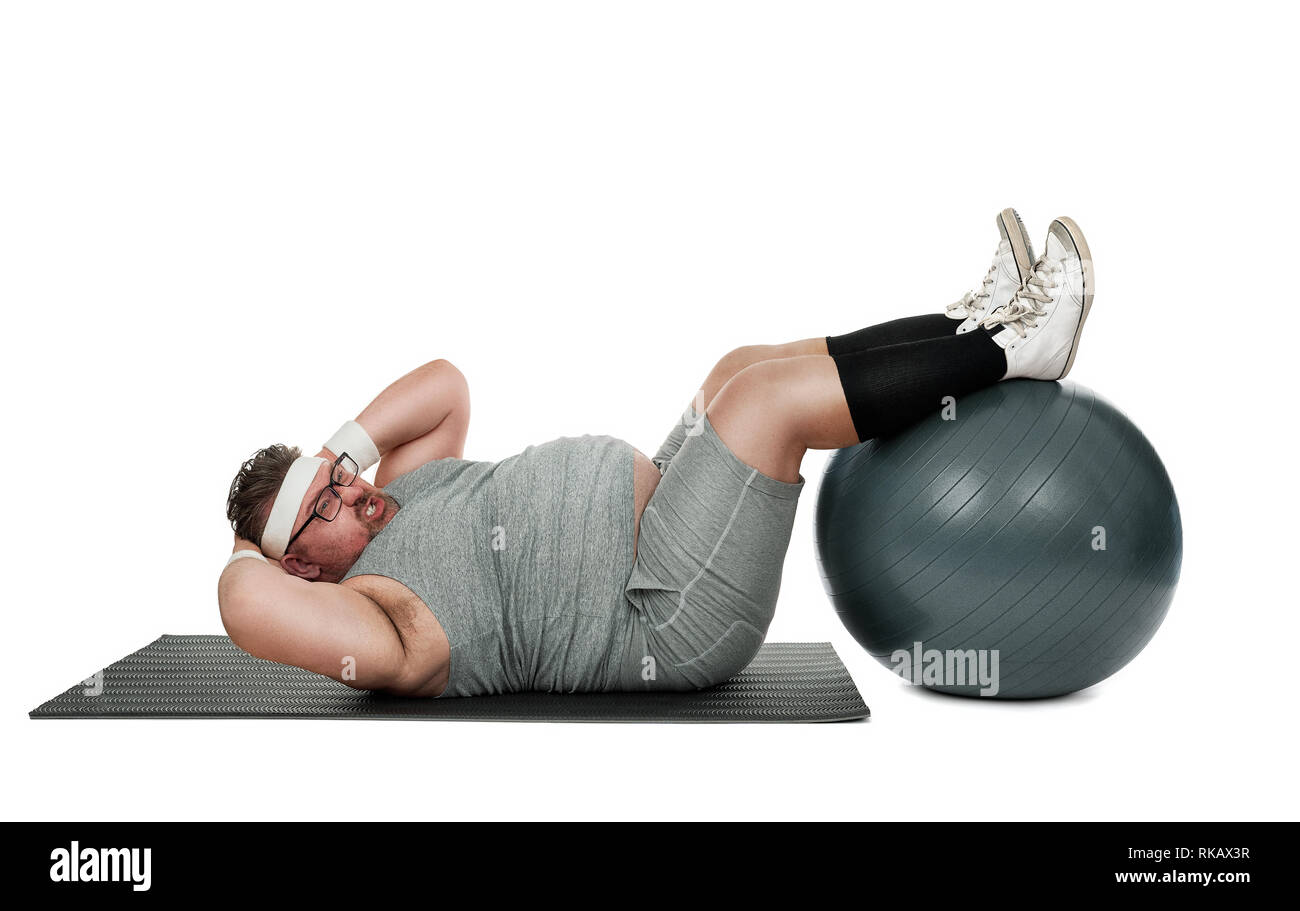 Divertenti Sport Sovrappeso Nerd Che Lavora Fuori Isolati Su Sfondo Bianco Foto Stock Alamy