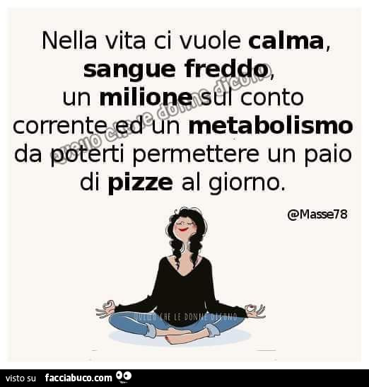 Nella Vita Ci Vuole Calma Sangue Freddo Un Milione Sul Conto Corrente E Un Metabolismo Facciabuco Com