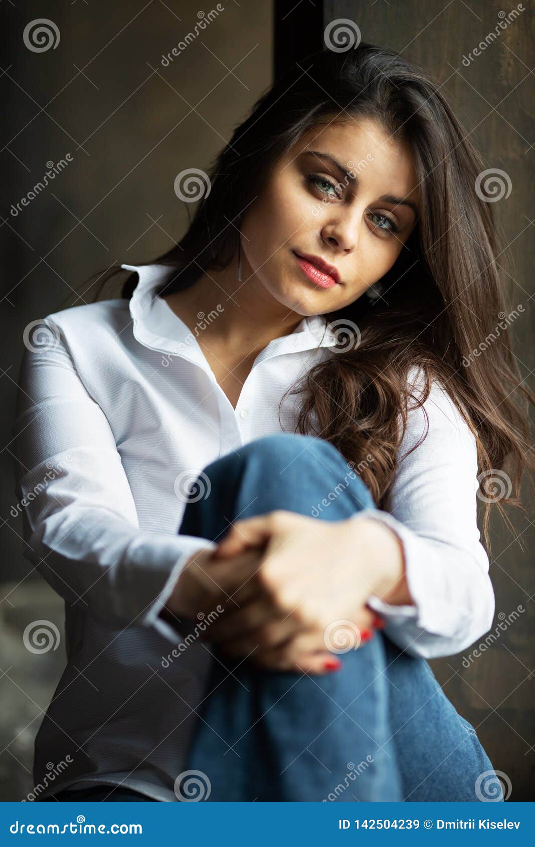 Bella Giovane Donna Mora In Jeans Immagine Stock Immagine Di Adorable Femmina 142504239