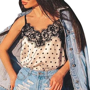 Kanlin 1986 Lingerie Erotica Donna Alla Moda Sexy Estate Gilet A Camiciola Con Stampa Pois Sezione Sottile Scollo A V Pigiama In Pizzo Camicia Da Notte Bianca Amazon It Abbigliamento