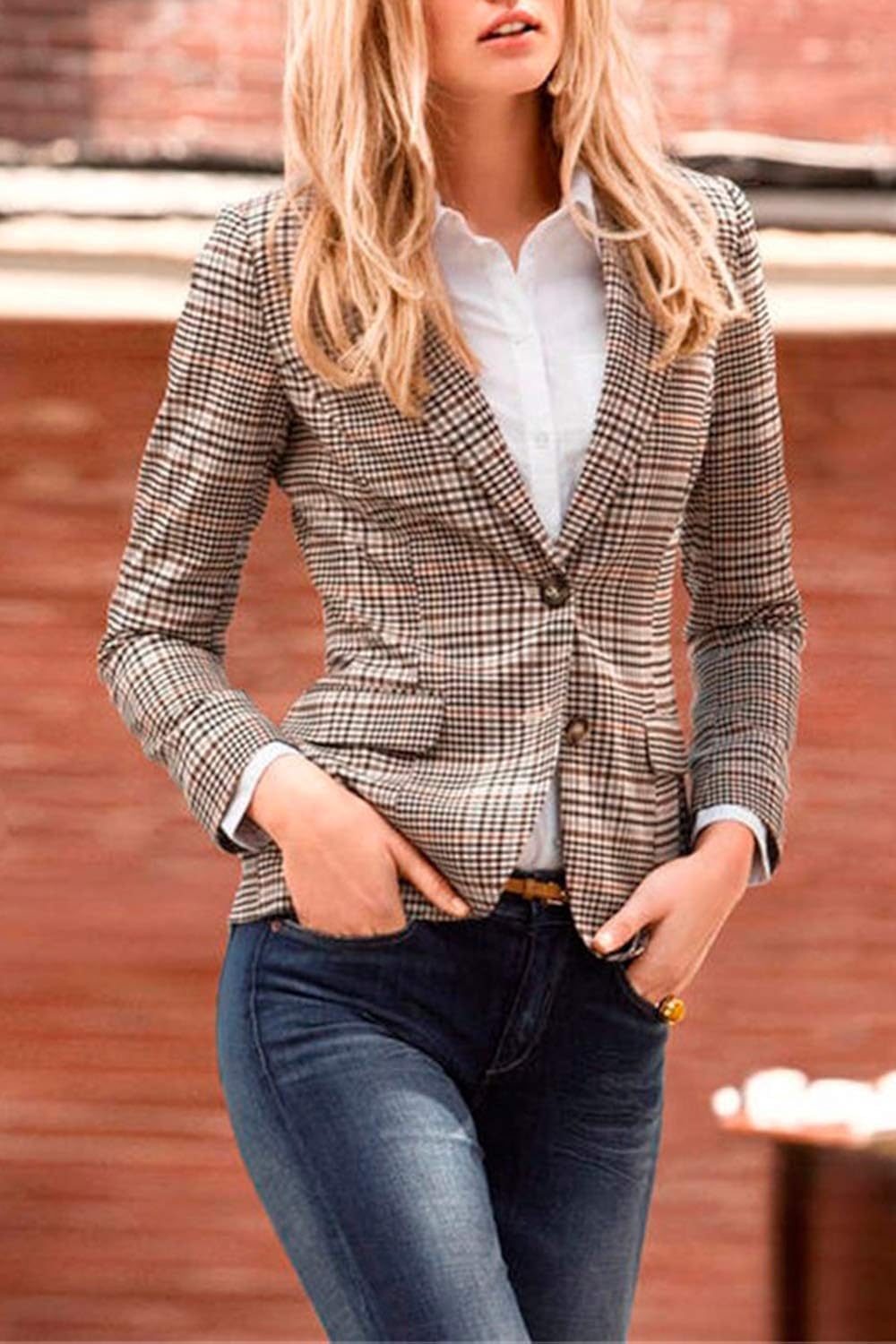 Simgahuva Donne Classico Blazer Scozzese A Maniche Lunghe In Forma Sottile Lavoro Giacca Donna Tailleur E Giacche