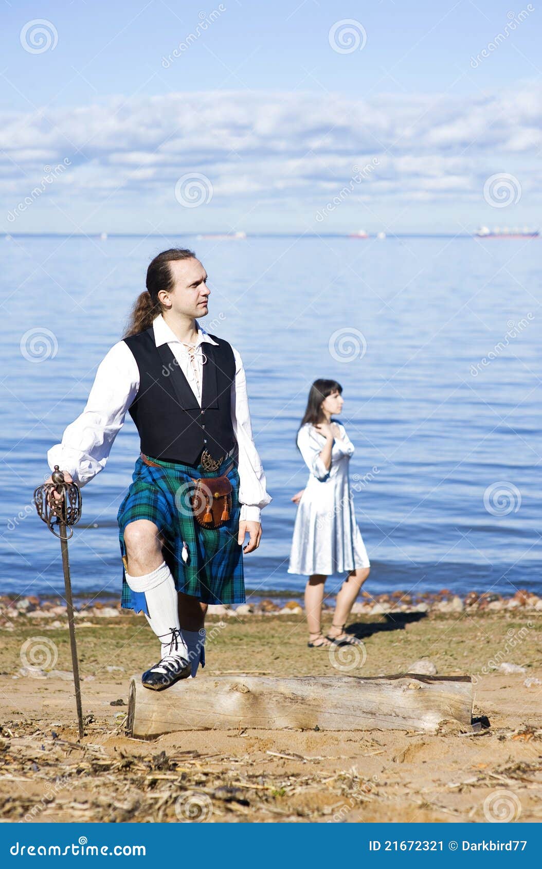 Uomo In Costume Ed In Donna Scozzesi Vicino Immagine Stock Immagine Di Broadsword Storico 21672321