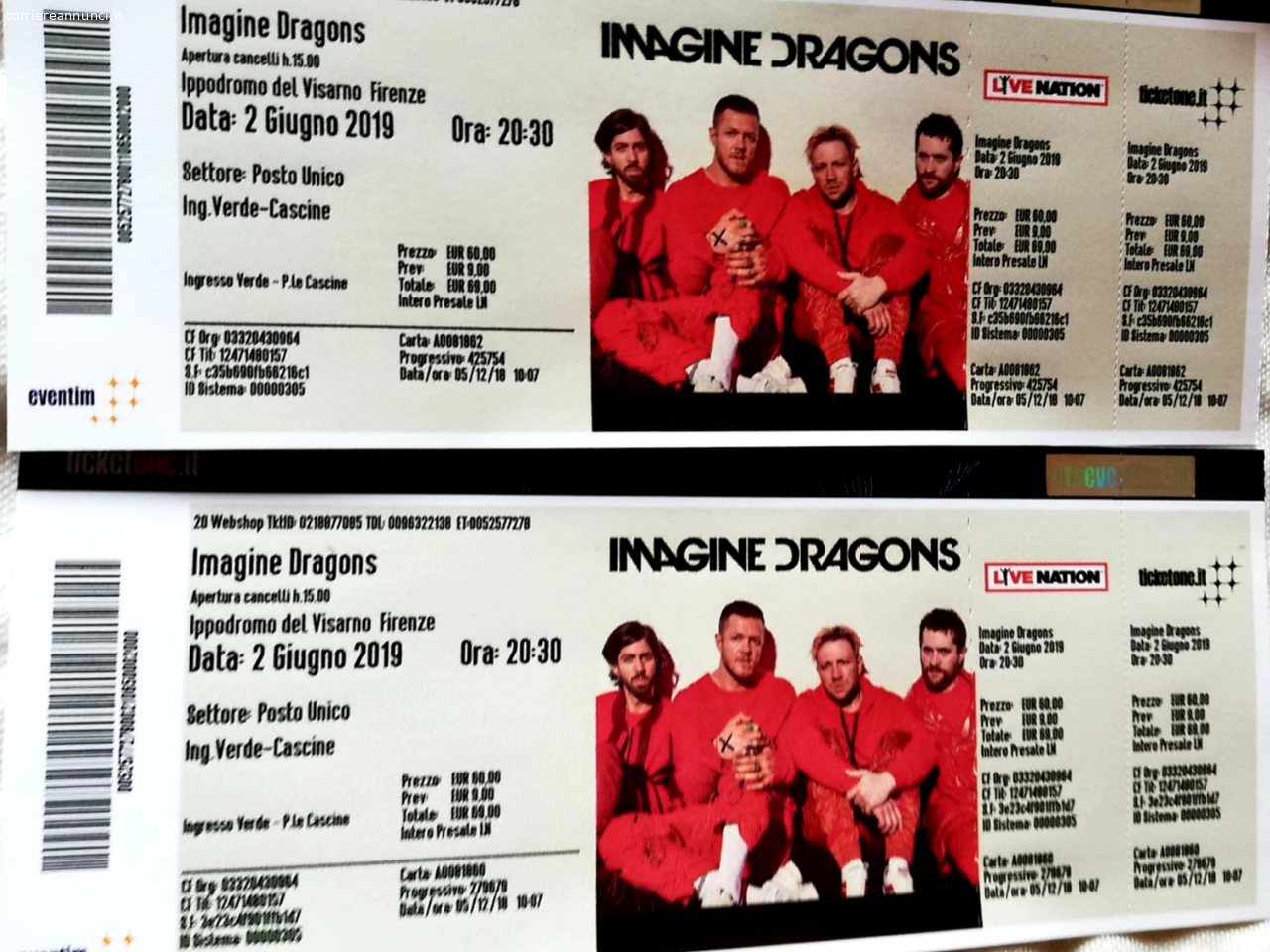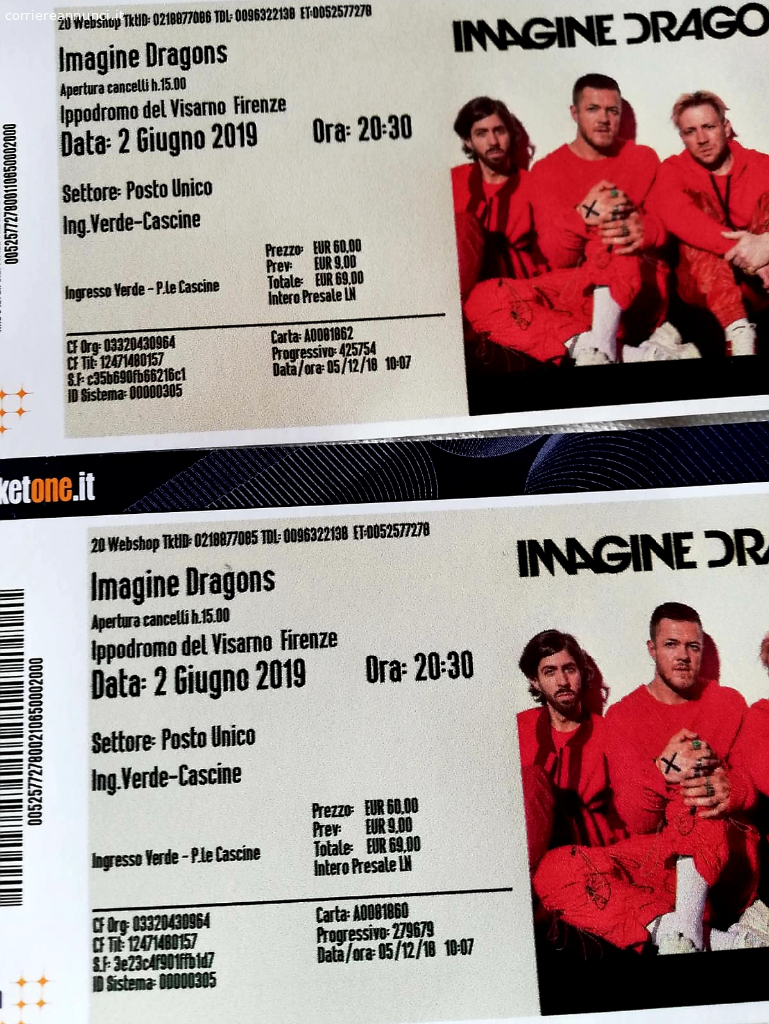 Annunci Musica 2 Biglietti Concerto Imagine Dragons 2 Giugno Firenze