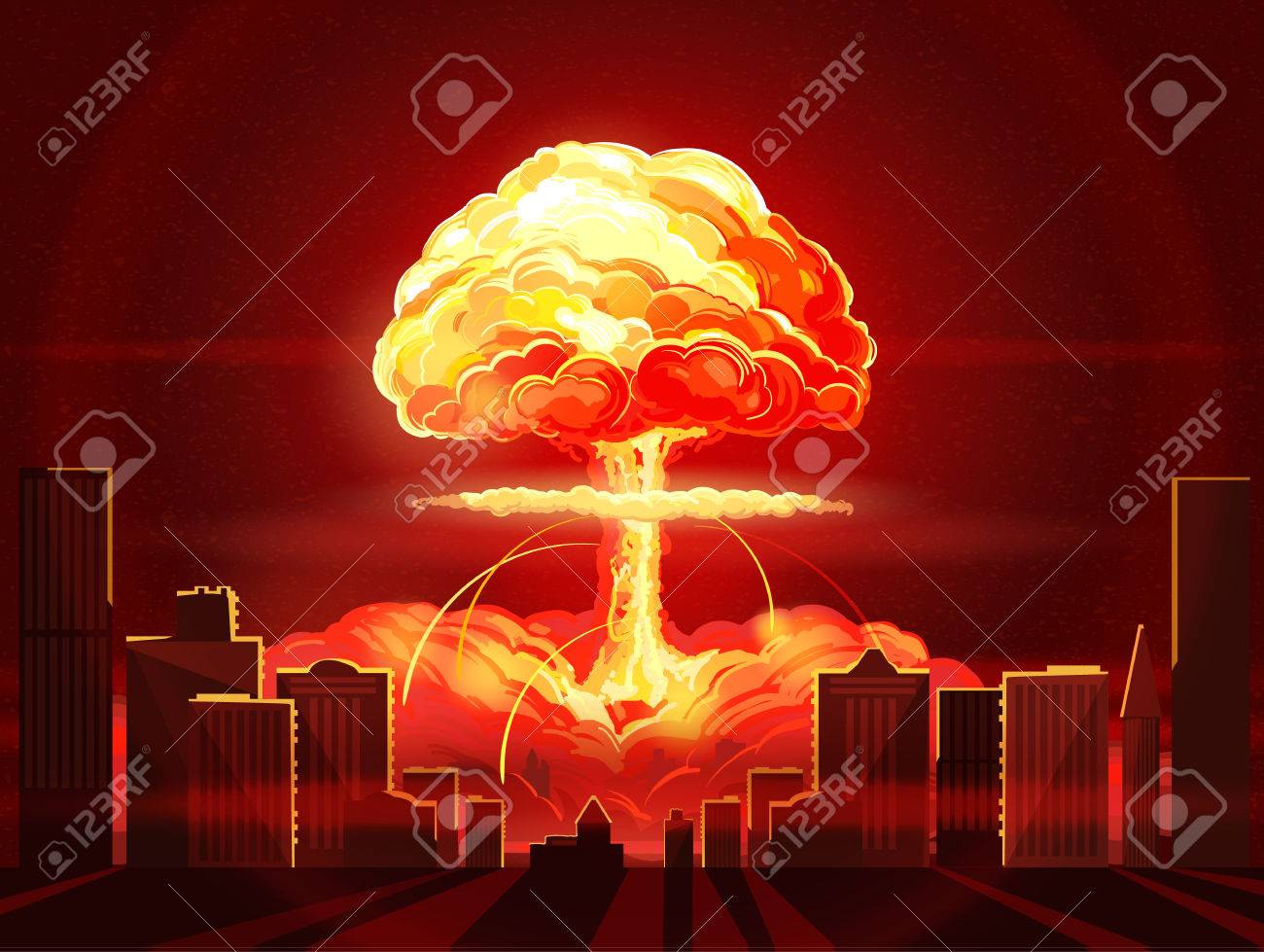 Vettoriale Esplosione Nucleare Bomba Atomica In Citta Simbolo Della Guerra Nucleare Fine Del Mondo Pericoli Dell Energia Nucleare Image 78064171