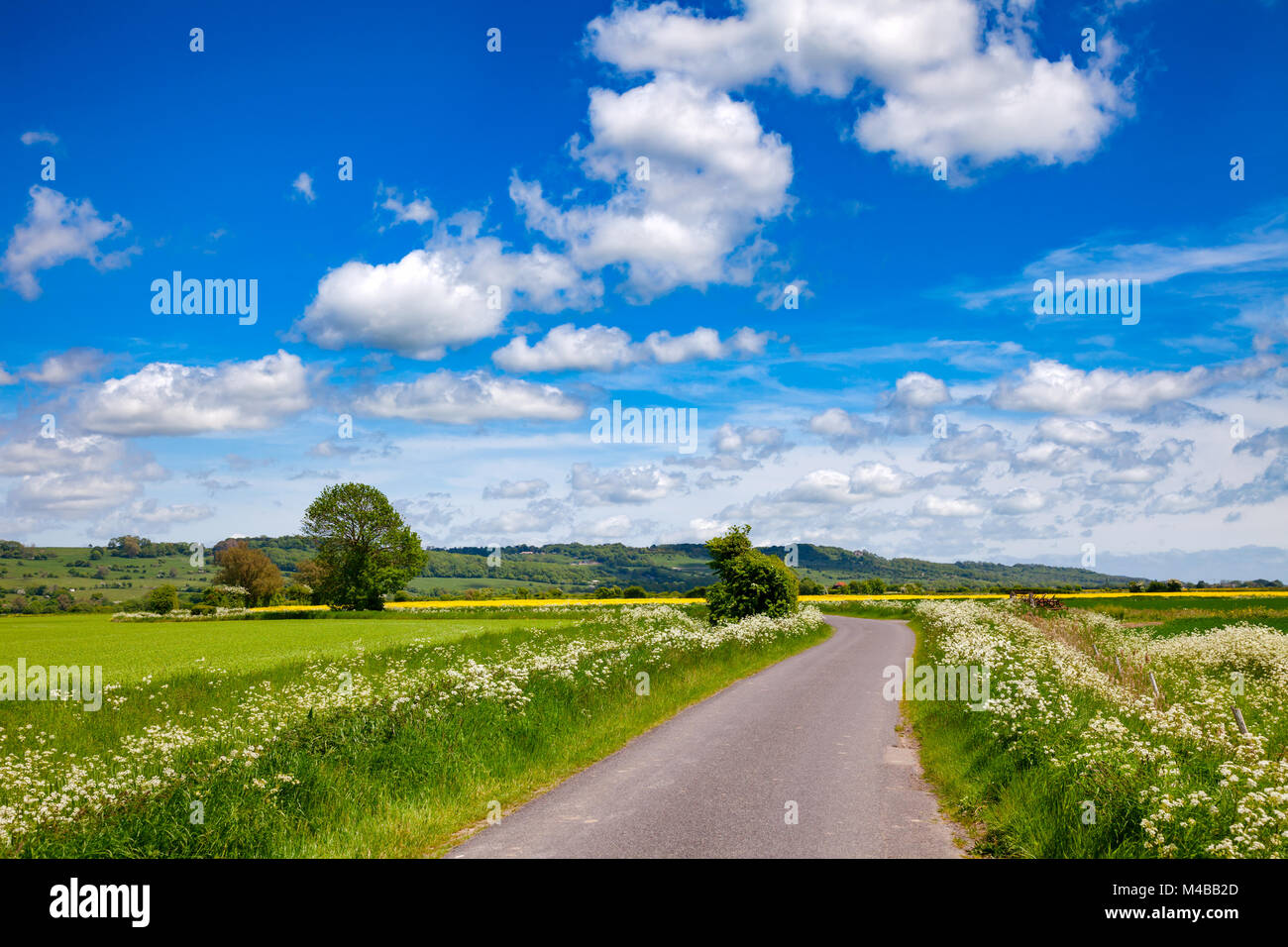 Estate Paesaggio Rurale Con Avvolgimento Una Corsia Country Road Passando Attraverso Un Paesaggio Di Campo Verde Sotto Un Cielo Di Estate Blu Nel Sud Dell Inghilterra Regno Unito Foto Stock Alamy
