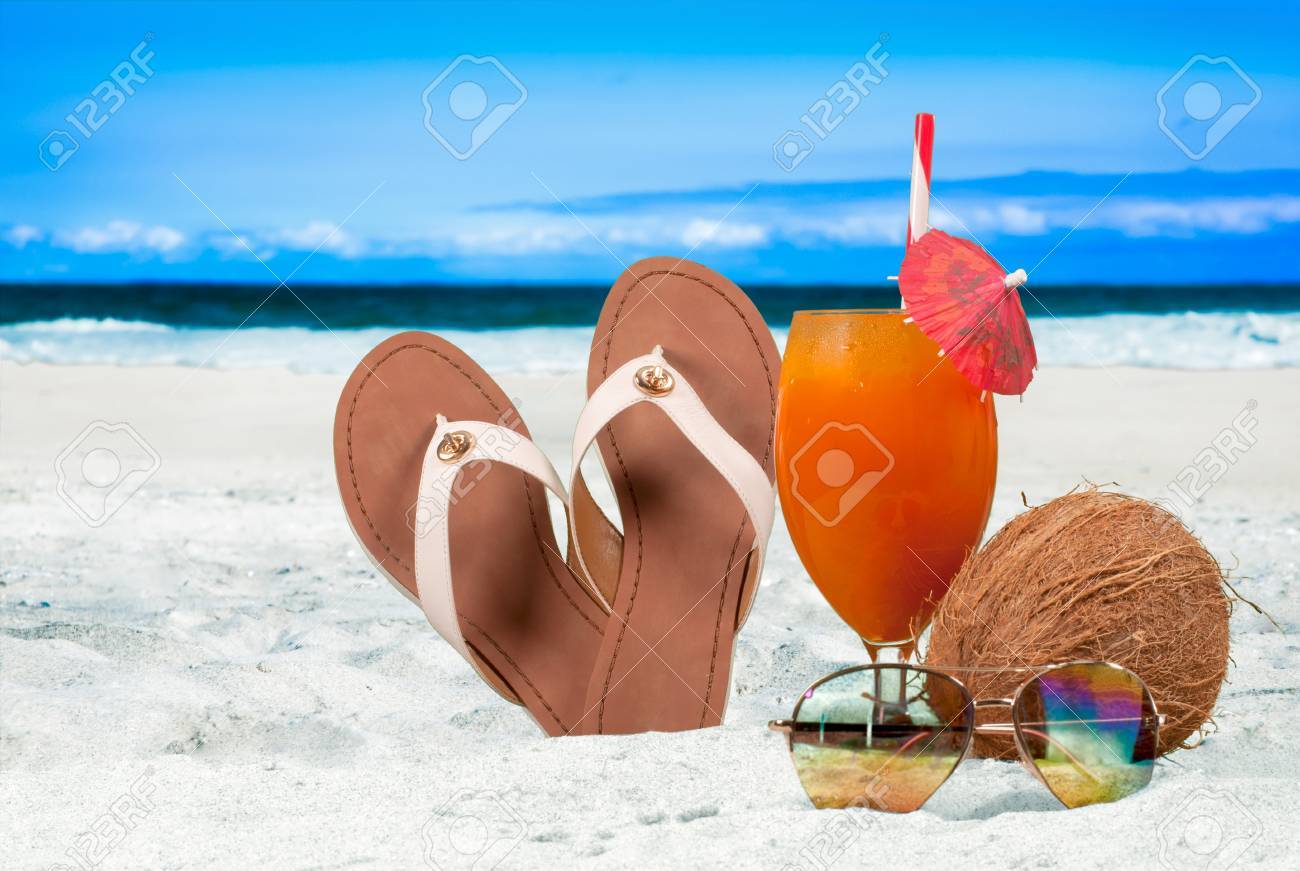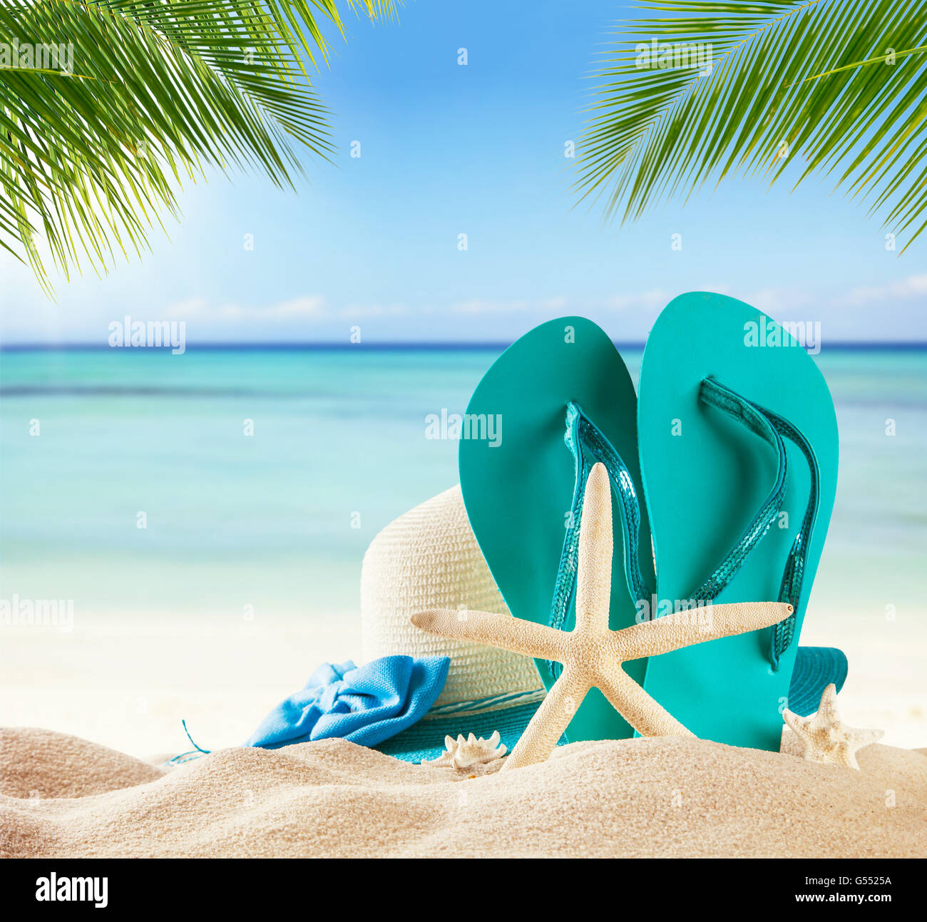 Accessori Estivi Sulla Spiaggia Di Sabbia Mare Di Sfocatura Sullo Sfondo Estate Esotico Concetto Di Rilassamento Copyspace Per Testo Foto Stock Alamy