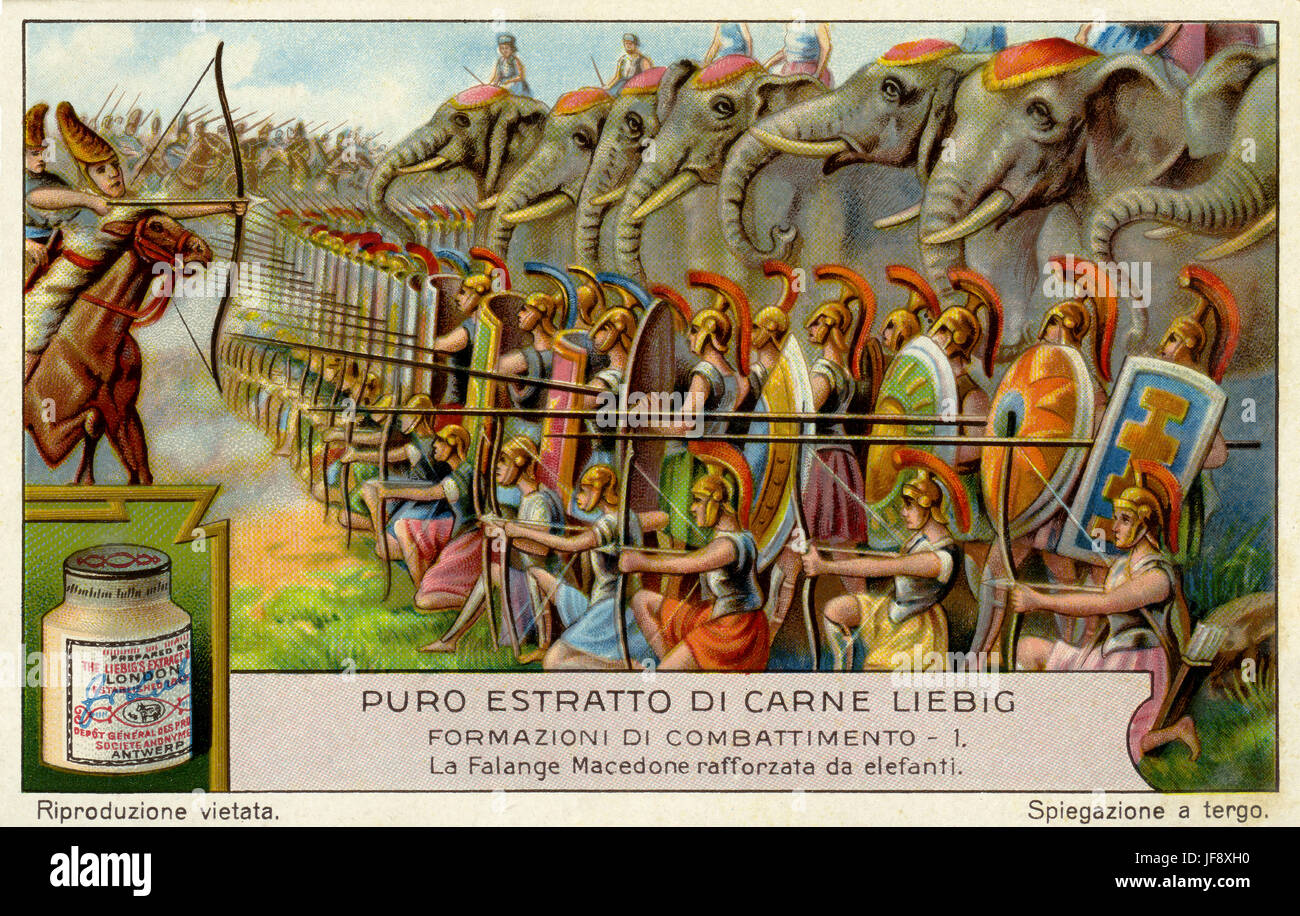 Falange Macedone Rinforzata Da Elefanti Formazioni Di Battaglia Liebig Collezionisti Di Carta 1929 Foto Stock Alamy