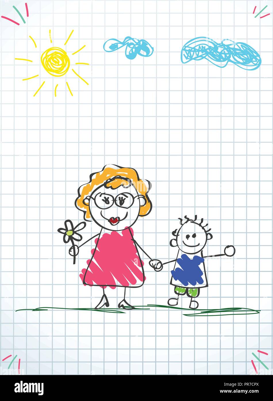 Bambini I Disegni Della Famiglia Felice Matita Colorata Disegnata A Mano Illustrazione Vettoriale Di Donna E Ragazzo Tenendo Le Mani Insieme Sul Notebook Squadrato Backgro Foglio Immagine E Vettoriale Alamy