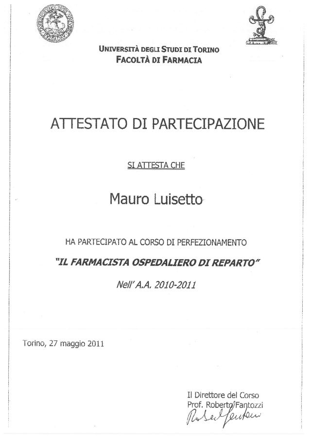 Attestato Farmacista Ospedaliero Di Reparto Luisetto M 2011