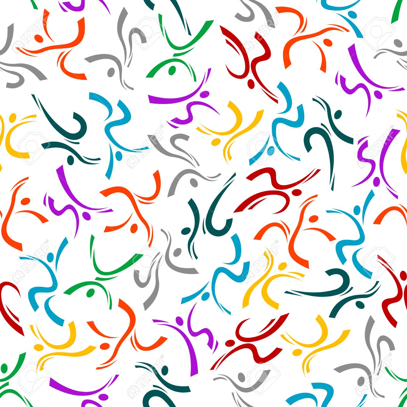 Vettoriale Colorate Figure Umane In Movimento Senza Soluzione Di Continuita Di Fondo Del Modello Con Sagome Di Persone Attive Costituite Da Linee Vorticoso Concetto Sportivo O Pagina Di Album Di Progettazione