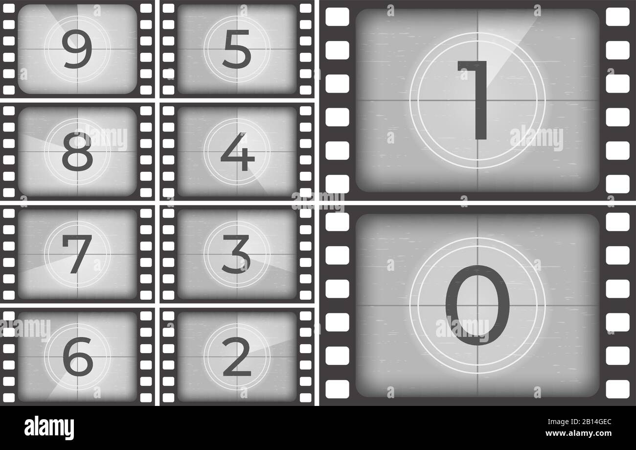 Conto Alla Rovescia Per Il Cinema Vecchi Film Film Striscia Frame Vintage Intro Numeri Di Conteggio Schermo O Retro Timer Frame Immagine Vettore Immagine E Vettoriale Alamy