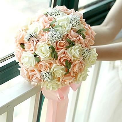 Bouquet Da Sposa Bouquet Di Fiori Artificiali In Seta Per Matrimonio Casa Decorazione Amazon It Casa E Cucina