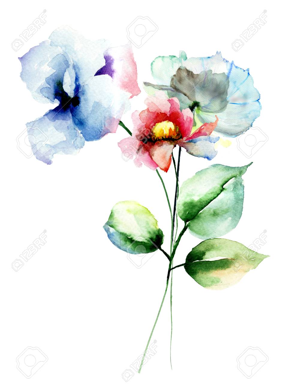 Immagini Stock Fiori Stilizzati Acquerello Illustrazione Image 46454378