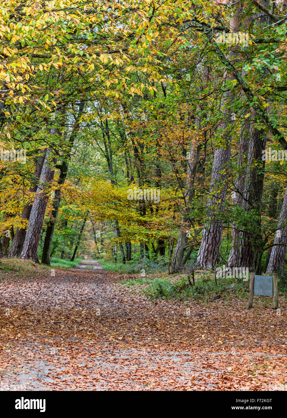 In Autunno Il Percorso Coperto Di Foglie Cadute In Un Bosco Di Latifoglie Situato Nella Foresta Fotnainebleau Nella Francia Centrale Foto Stock Alamy