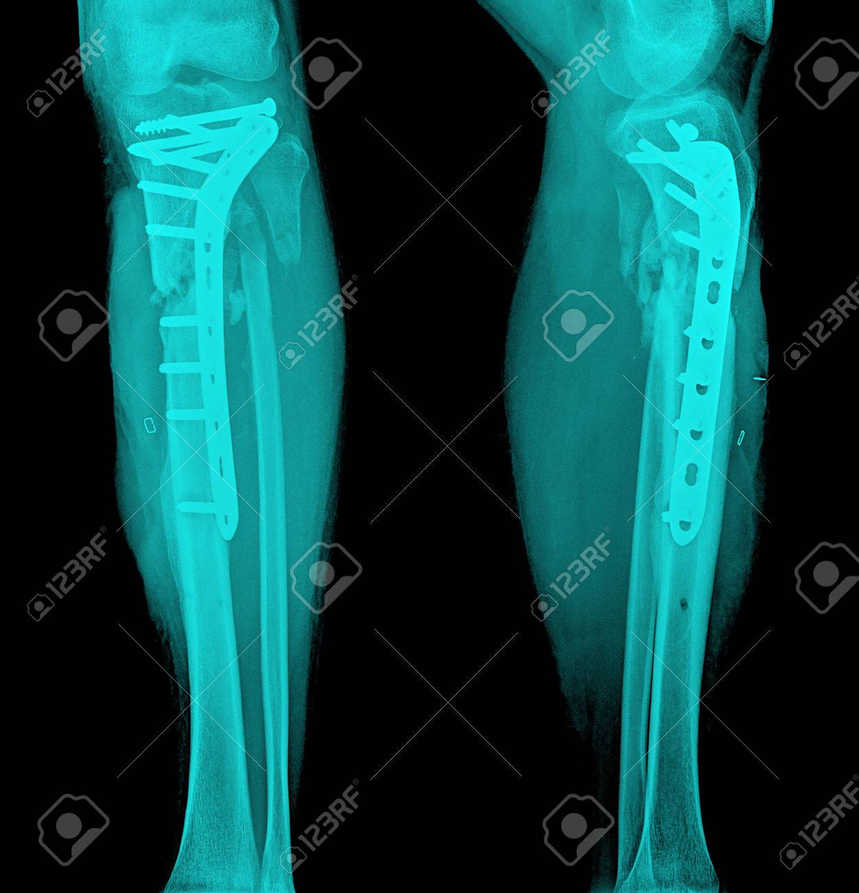 Immagini Stock Pellicola Gamba Ap Laterale Spettacolo Albero Frattura Di Tibia E Perone Osso Della Gamba Paziente E Stato Operato E Inserire Piatto E Vite Per Osso Fix Gamba Image 39099830