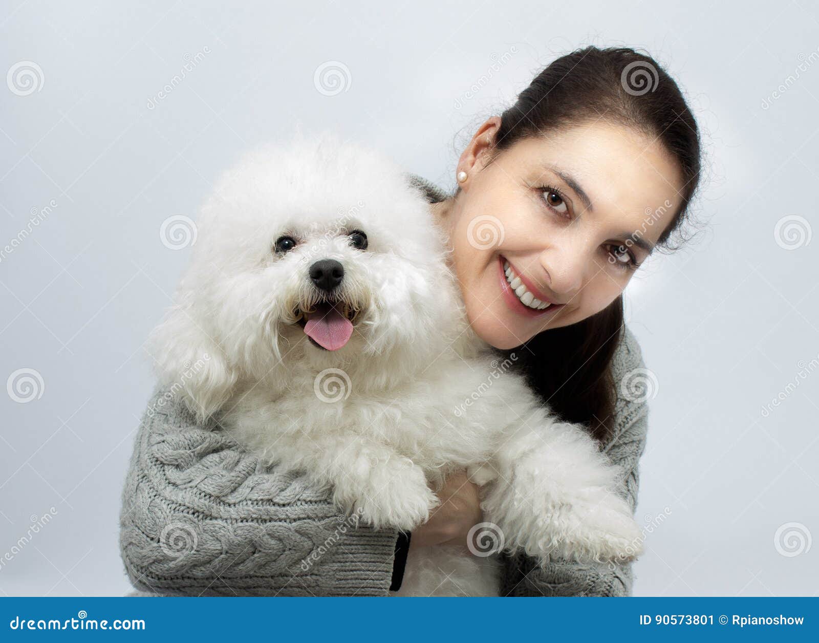 Donna Con Il Cane Del Frise Del Bichon Immagine Stock Immagine Di Isolato Donna 90573801