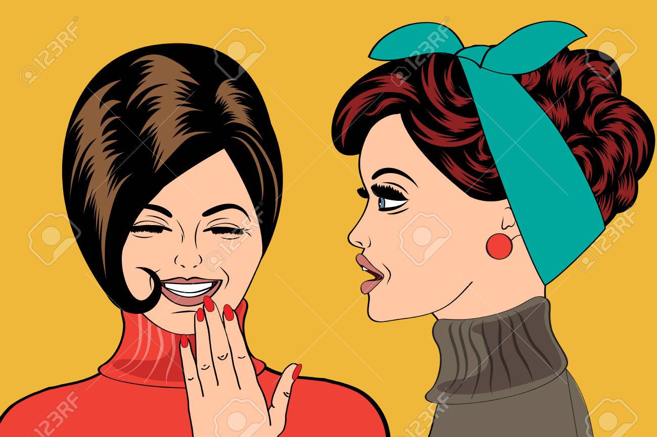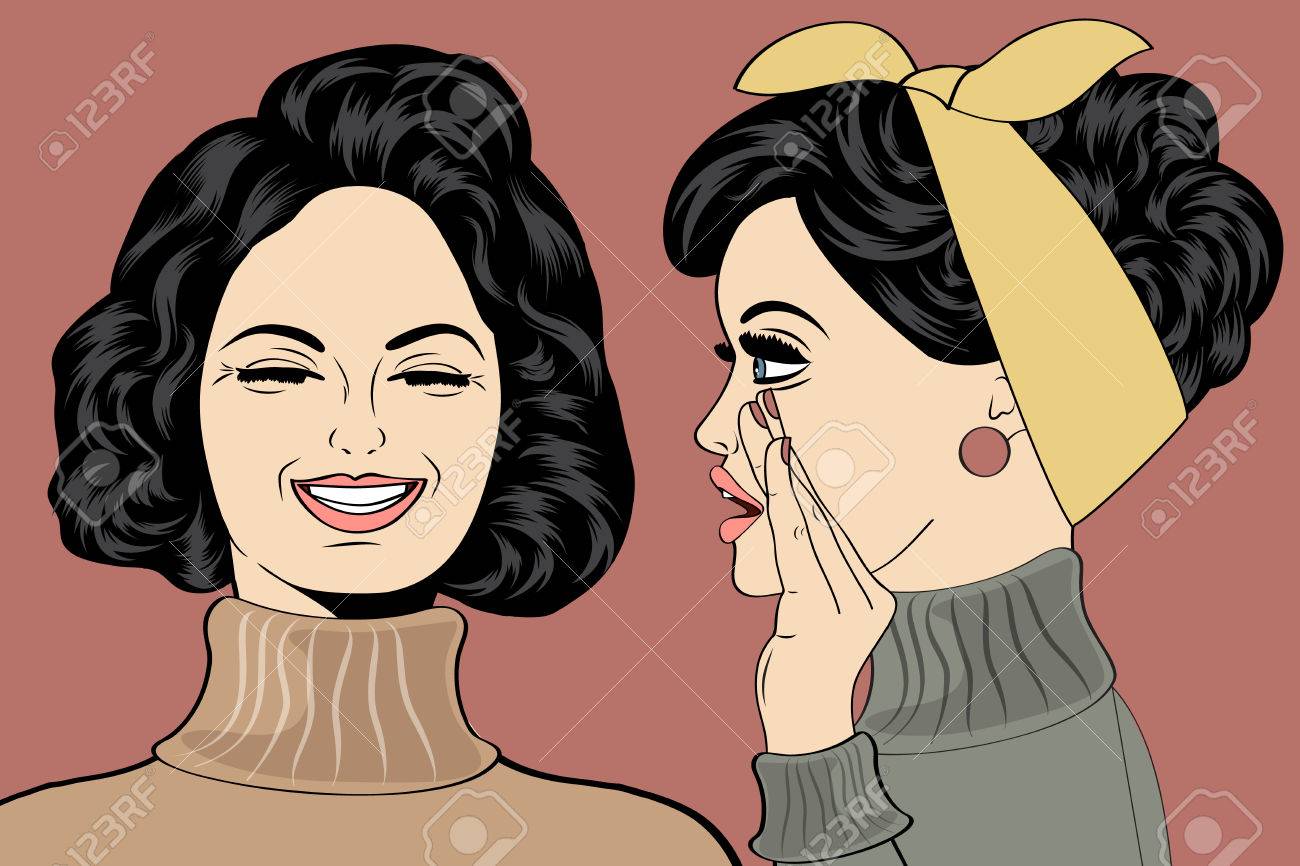 Vettoriale Donne Che Parlano Sussurrando Pop Art Retro Stile Fumetto Illustrazione Image 74481312