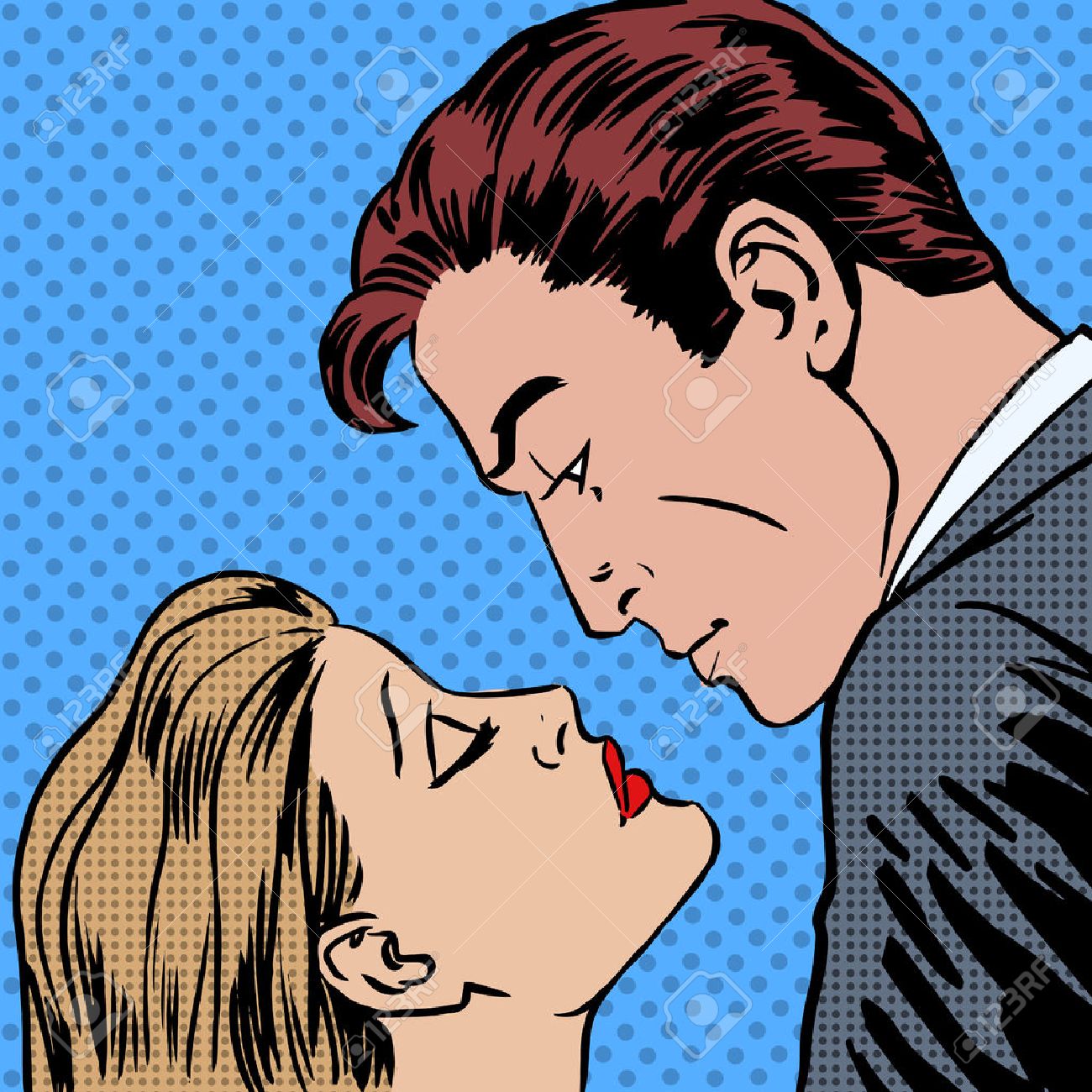 Vettoriale Amore Uomini E Donne Baciano Pop Art Fumetti Stile Retro Mezzitoni Imitazione Di Vecchie Illustrazioni Romantico Data Image 38758881