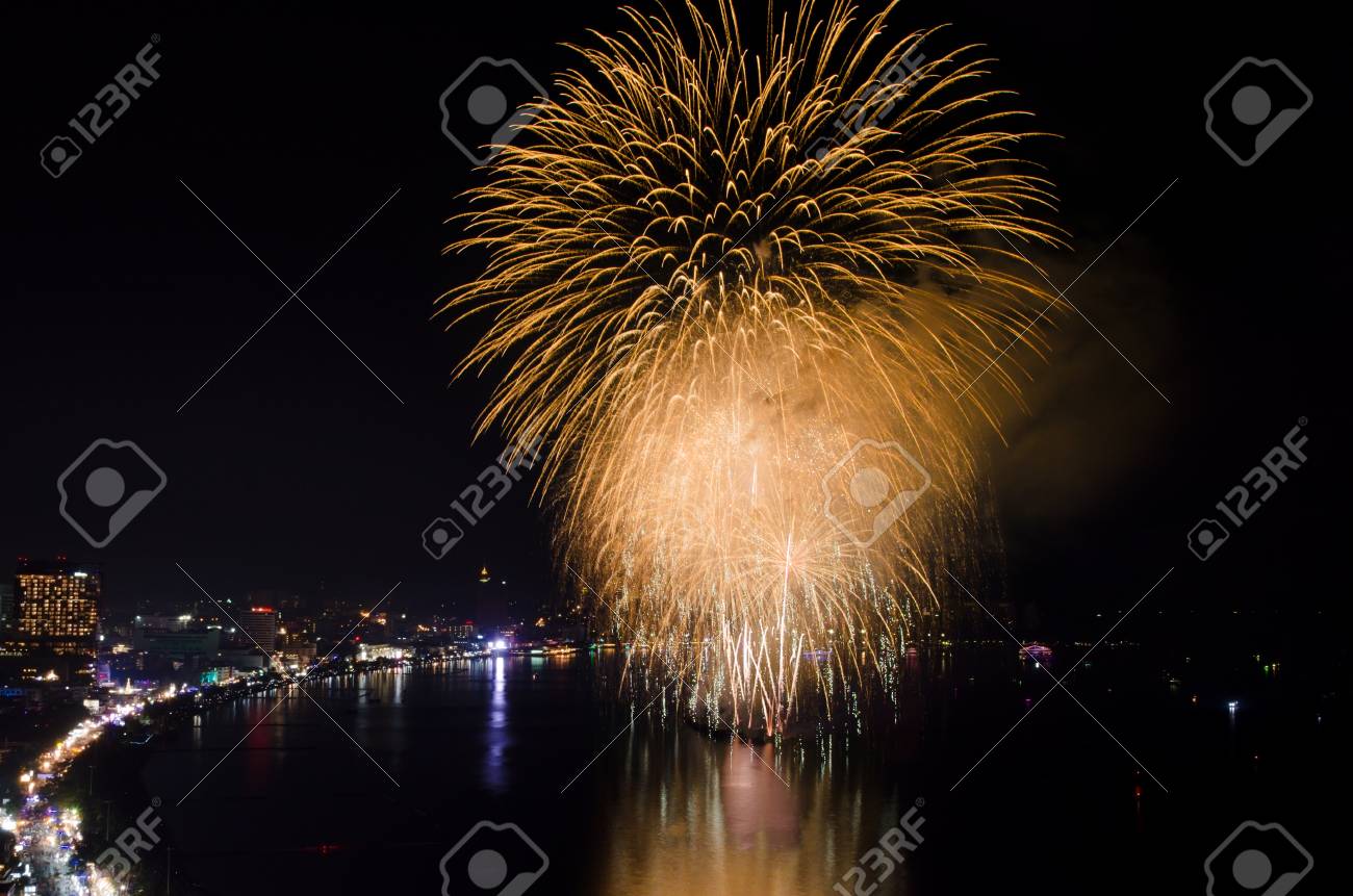 Immagini Stock Fuochi D Artificio Sul Mare Alla Citta Di Pattaya Thailandia Image 72911947