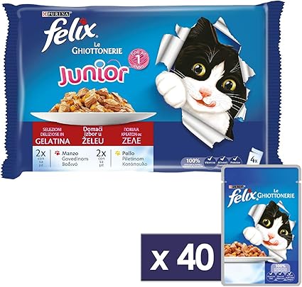 Felix Le Ghiottonerie Gatto Junior Con Manzo E Con Pollo 4 X 100 G Confezione Da 10 Pezzi Amazon It Prodotti Per Animali Domestici