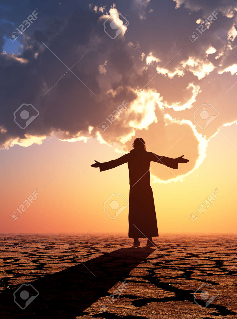 Immagini Stock Gesu Nel Deserto Rendering 3d Image 89180835