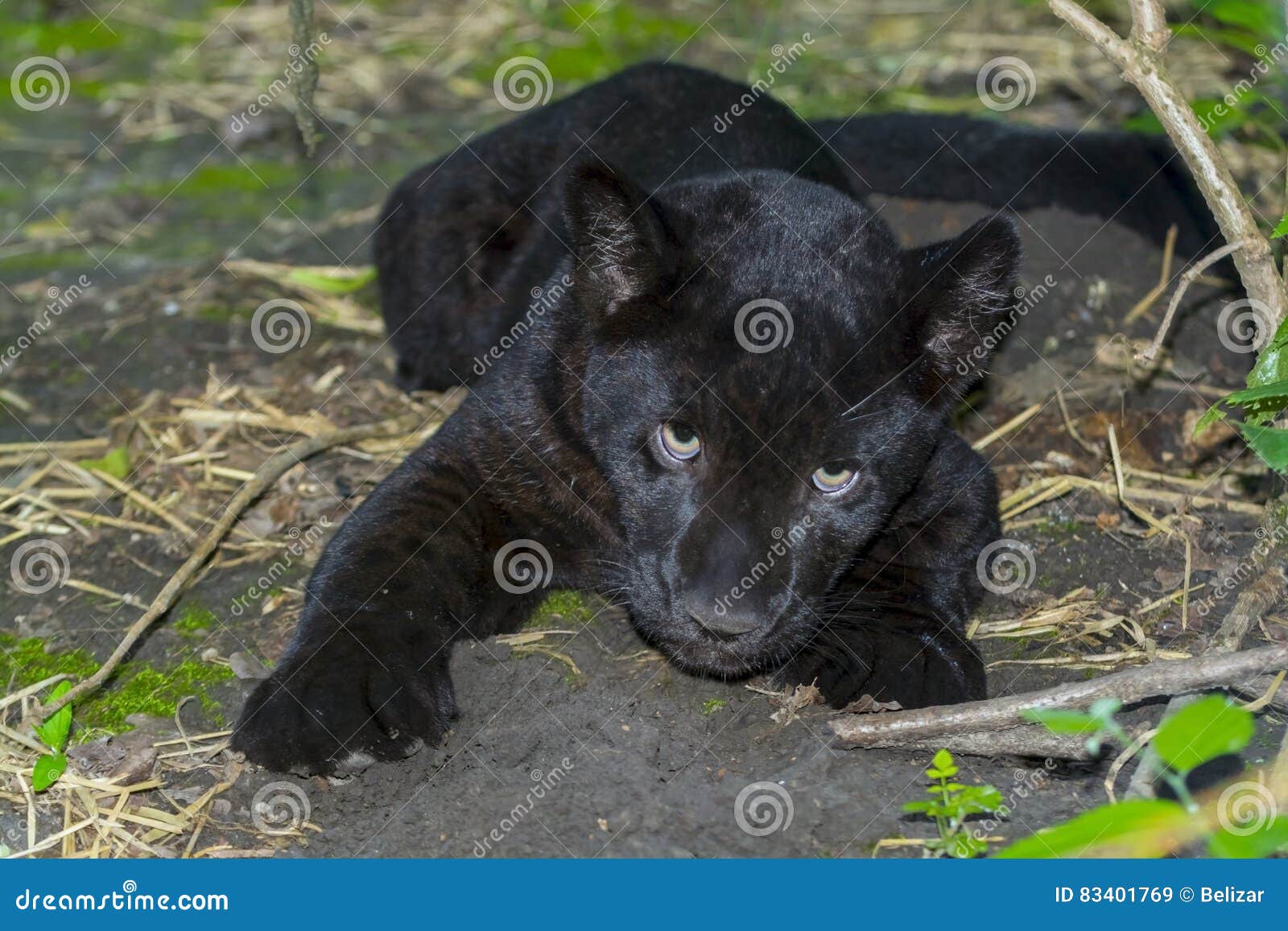 Immagini Stock Giaguaro Nero Panthera Onca E Seduto Per Terra Image 47110553