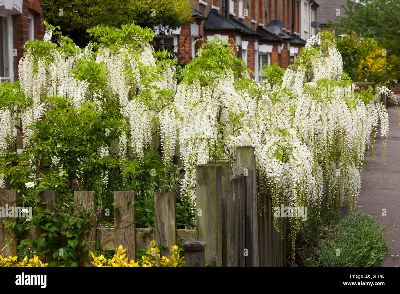Gli Alberi Di Maggiociondolo E Di Glicine In Piena Fioritura Che Cresce Fuori Di Un Bianco Hanno Dipinto La Casa In Kensington Lo Immagine Stock Immagine Di Fiore Giardinaggio 116253475