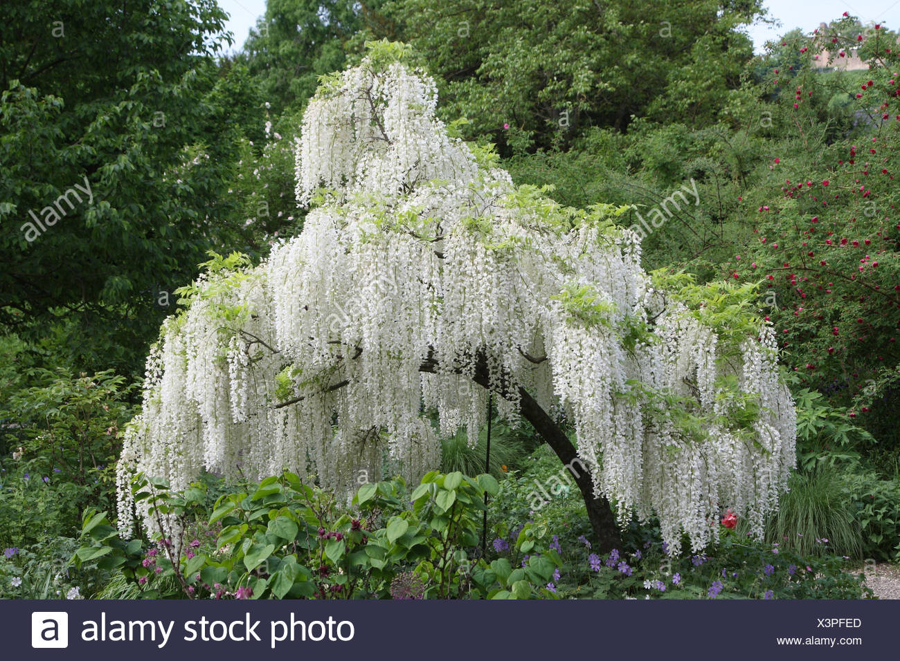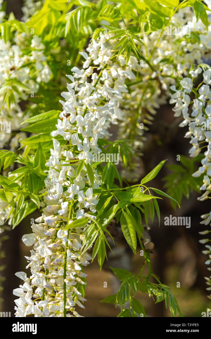 Bella Piena Fioritura Del Glicine Bianco Alberi In Fiore Trellis Fiori In Primavera La Giornata Di Sole A Ashikaga Parco Floreale Prefettura Di Tochigi Giappone Foto Stock Alamy