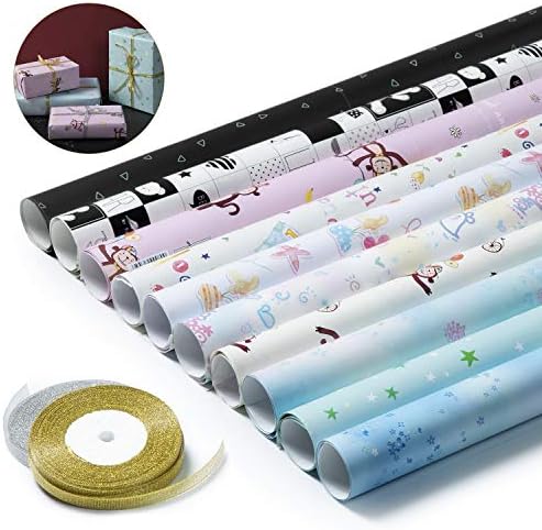 Natale Fogli Di Carta Da Regalo Compleanni Matrimoni Anniversari Jointek 8 Carta Da Regalo Colorata Tinta Di Stars Glitter Con 2 Nastro Per Uomini Femminili Regali Feste Baby Shower 70x50cm Carta Da