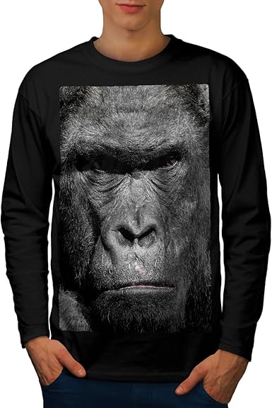 Wellcoda Viso Animale Gorilla Foto Uomini Maglietta A Maniche Lunghe Arrabbiato Disegno Grafico Amazon It Abbigliamento