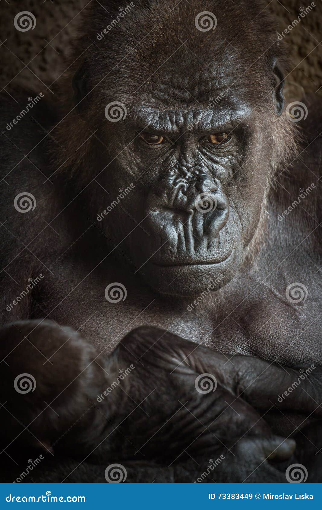 Sguardo Arrabbiato Della Gorilla Alla Macchina Fotografica Immagine Stock Immagine Di Scimmia Verde 122191523