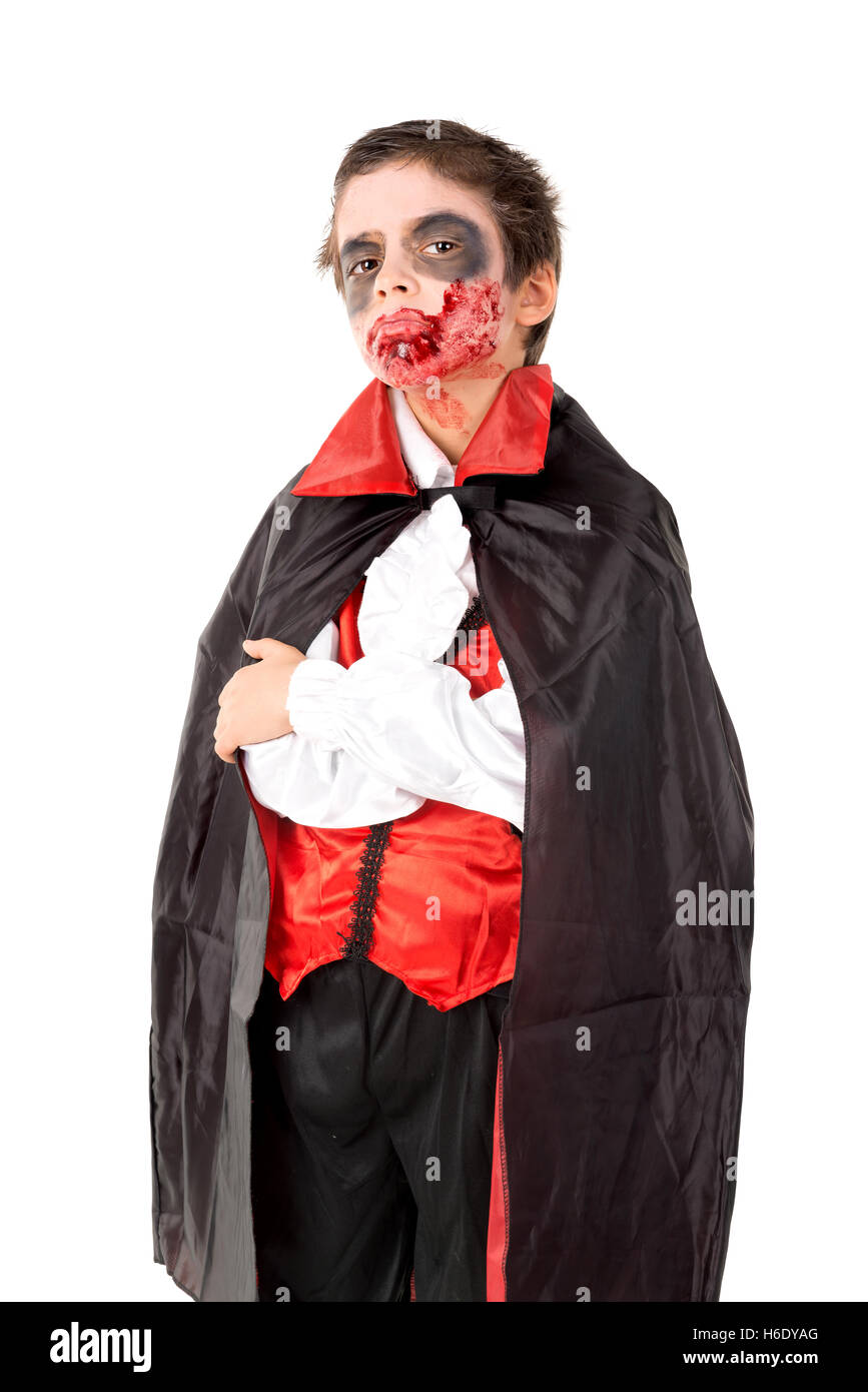 Boy With Face Paint And Vampire Halloween Costume Isolated In White Stock Photo Alamy