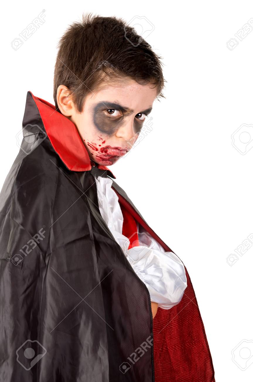 Boy With Face Paint And Vampire Halloween Costume Isolated In Stock Photo Picture And Royalty Free Image Image 63769208