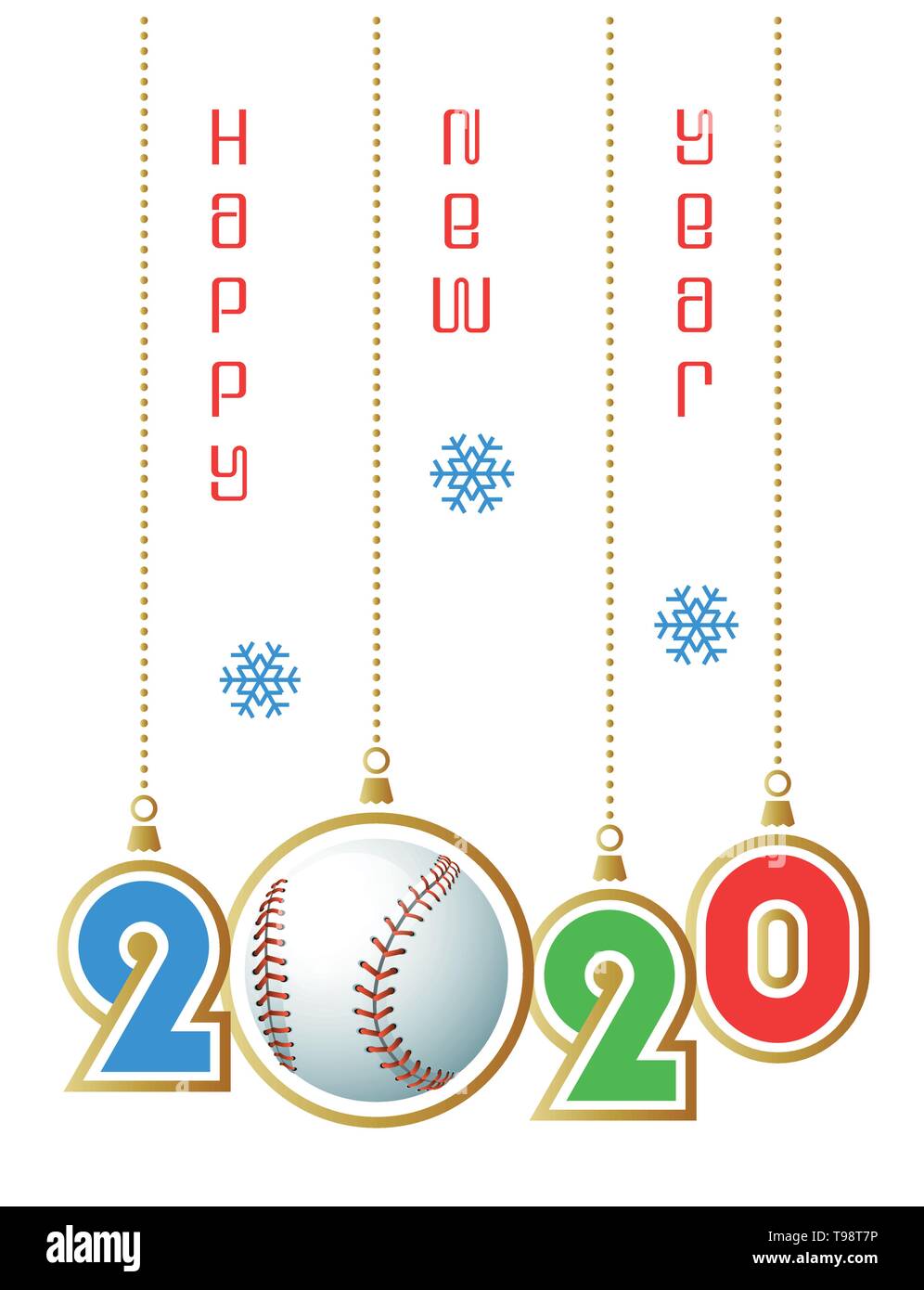 Happy New Year 2020 Sports Greeting Card With Realistic Baseball Ball Vector Illustration Stock Vector Image Art Alamy