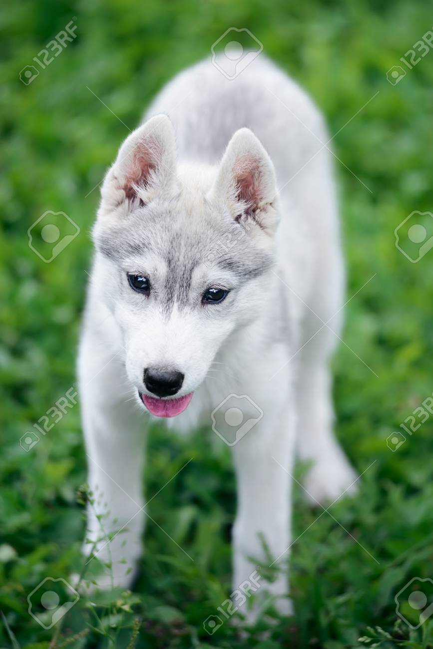 Puppy Of Siberian Husky Is Standing On Green Grass Stock Photo Picture And Royalty Free Image Image 48926563