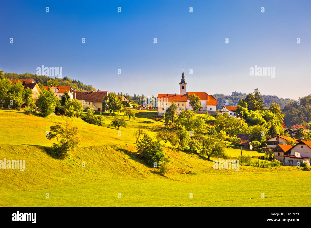 Villaggio Di Campagna In Slovenia Vista Primavera Idilliache Colline Verdi Foto Stock Alamy