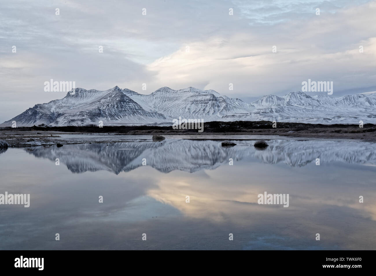 Montagne Idilliache Riflessione Nella Primavera Calda A Landbrotalaug Hot Pot Snaefellsnesvegur Coordinate 64 49 56 3 N 22 18 57 8 W Foto Stock Alamy