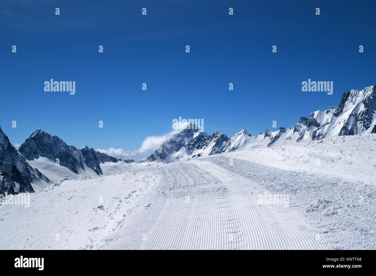 Strada Innevata Con Tracciato Da Neve Toelettatore E Bellissime Montagne Invernali Presso Sun Freddo Giorno Montagne Del Caucaso Regione Dombay Foto Stock Alamy