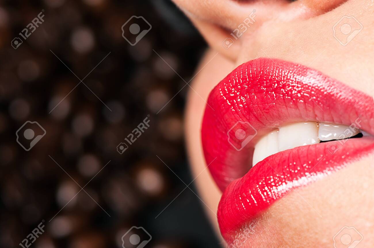 Immagini Stock Labbra Sensuali Su Uno Sfondo Chicchi Di Caffe Image 29991952